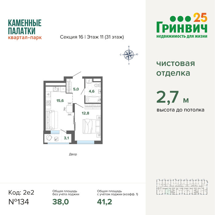 Продажа квартиры: Екатеринбург, ул. Высоцкого, ЖК "Парк Каменные палатки" (Гринвич) (Секция 16)