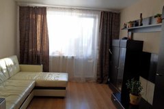 Хорошая планировка - выделена зона кухни, комната квадратная. Есть лоджия, окна выходят на тихую зеленую зону, очень уютно для проживания.