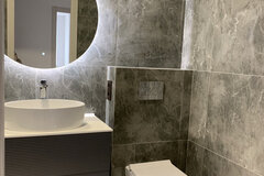 Кухня-гостиная зонирована на зону отдыха и кухонную зону, установлен новый кухонный гарнитур, есть вся необходимая встроенная бытовая техника: вытяжка, духовой шкаф, варочная поверхность, холодильник и посудомоечная машина. Гарнитуру меньше года! В мастер спальне выполнена отделка санузла - все в плитке, сантехника заменена.