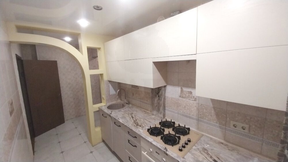 В кухне, коридоре и ванной комнате в плитка. Заменили всю электропроводку, установлены новые автоматы. Проводка не поверхностная, штробили стены.