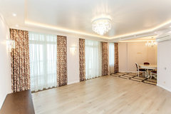 Современная нейтральная отделка из классических материалов: паркетная доска, дерево, керамогранит. Квартира полностью декорирована мебелью и оснащена техникой премиального сегмента (NEFF, Miele), очень хорошее аккуратное состояние интерьера с минимальной эксплуатацией.