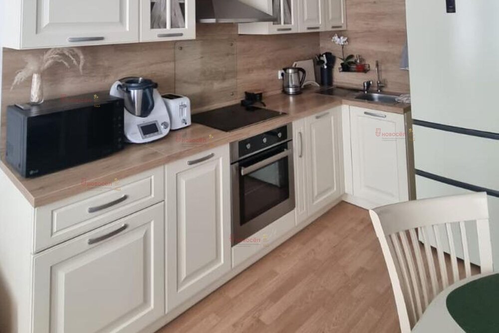 В квартире проложена медная проводка, увеличено количество розеток, заменён весь пол, уложен износостойкий ламинат, по всей квартире натяжные матовые потолки, не броские обои отличного качества, установлены счетчики ХВС, ГВС, электроснабжения. на кухне ( S- 8 м2) остается кухонный гарнитур с встроенной техникой, электроплита и духовка фирмы BOSH. В большой комнате остается стенка и диван, 2 раздельные комнаты (жилая S= 16,5 м2 и 10,5 м2), просторная видовая лоджия 7,5м2 обшита деревом и установлены стеклопакеты, бонусом к квартире идёт коридор 5,5 м2, санузел – раздельный, в ванной и в туалете на полу и стенах уложена плитка. Окна квартиры на 2 стороны дома, что создает хорошую циркуляцию воздуха, комнаты изолированы. Летом прохладно - зимой тепло.