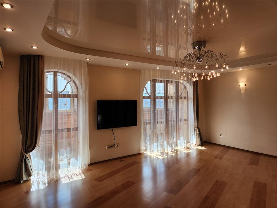 ID в ИМЛС: 44759858 Продам 3-комн. двухуровневую квартиру в кирпичной доме, 10 - 11 этаж. 10 этаж: гостиная 25,3 кв,. м с панорамными окнами и выходом на застекленную лоджию. Кухня 11,5 кв. м, кухонный гарнитур со встроенной бытовой техникой. С/у и гардеробная. Лестница на второй этаж маршевая. 11 этаж: спальня с мебелью 13,4 кв. м, детская 17,7 кв. м, ванная комната 5, 3 кв. м. Стеллажи под библиотеку вдоль лестницы, открытый кабинет, зеркальный шкаф-купе. Закрытый охраняемый двор, две детские площадки, спортивные площадки, корт для футбола, парковка для велосипедов, зоны отдыха, озеленение. Во дворе есть подземный гараж. Собственник.