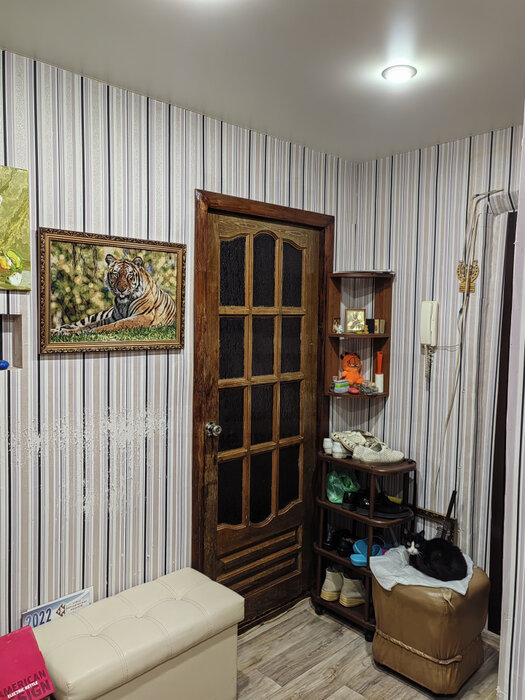 В квартире пространство грамотно спланировано для удобства и комфортного проживания, две комнаты изолированы, большая комната совмещена с кухней. Хорошая дверь, окна пластиковые на две стороны дома. Санузел в кафеле, балкон обшит деревом и остеклен алюминиевыми рамами. Состояние - заезжай и живи.