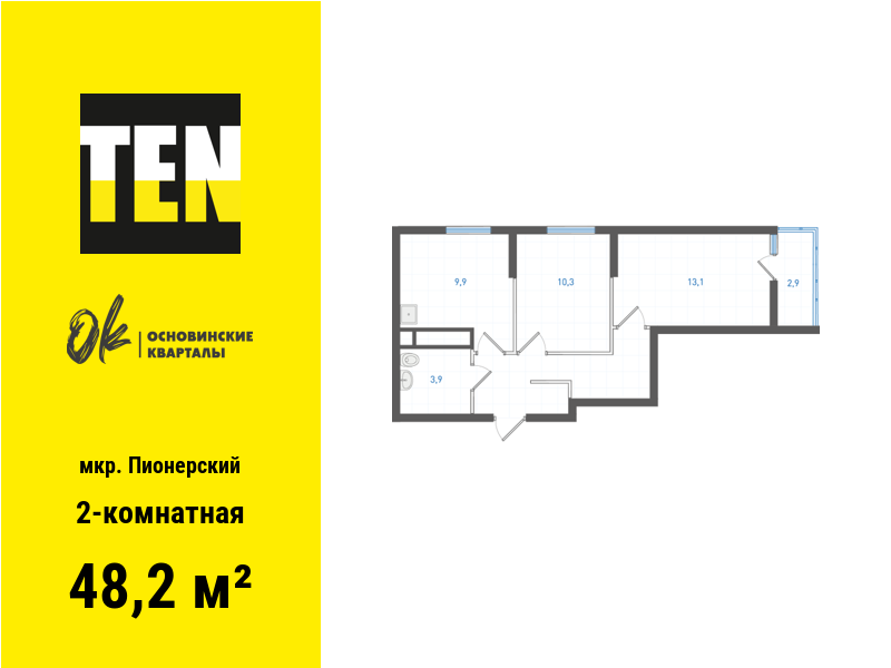 Объект № 186379. Продам евродвушку в Основинских кварталах. Срок сдачи 1 квартал 2026 года. Этот ЖК- масштабная, комплексная застройка в Пионерском микрорайоне в границах улиц Учителей - Вилонова - Сулимова. Это новый формат жилой среды и сценариев жизни активно растущего и развивающегося района. Удачная планировка- окна выходят на две стороны (запад и восток). Отделка под чистовую. До ТРЦ Парк-Хаус 8 минут пешком, до озера Шарташ 13 минут на машине, 10 минут до ЖД вокзала на машине.