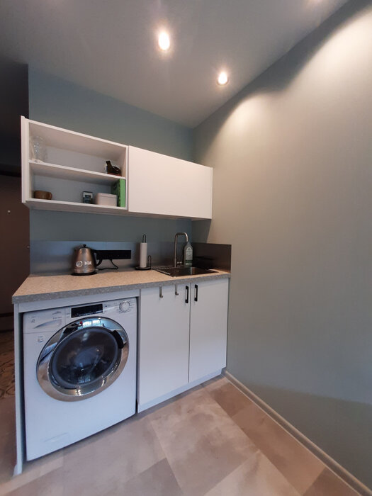 Бытовая техника (микроволновка-духовка, холодильник, стиральная машина с сушкой, водонагреватель и т.д.), мебель всё абсолютно новое и остаётся В ПОДАРОК!