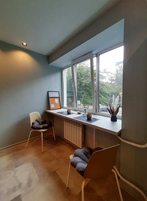В интерьере всё продумано до мелочей, от маленького трансформера-стола, который может стать большим, и свободно передвигающимся, до пуфа, который легко превращается в пять стульев!
