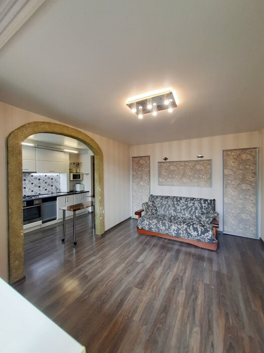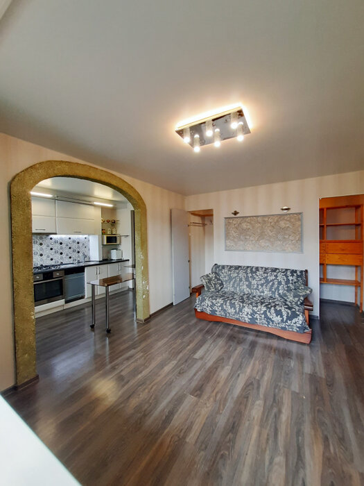 Состояние хорошее: стеклопакеты, натяжной потолок, ламинат, сейф-дверь, установлены счётчики на воду. Полулоджия застеклена, сан.узел раздельный.