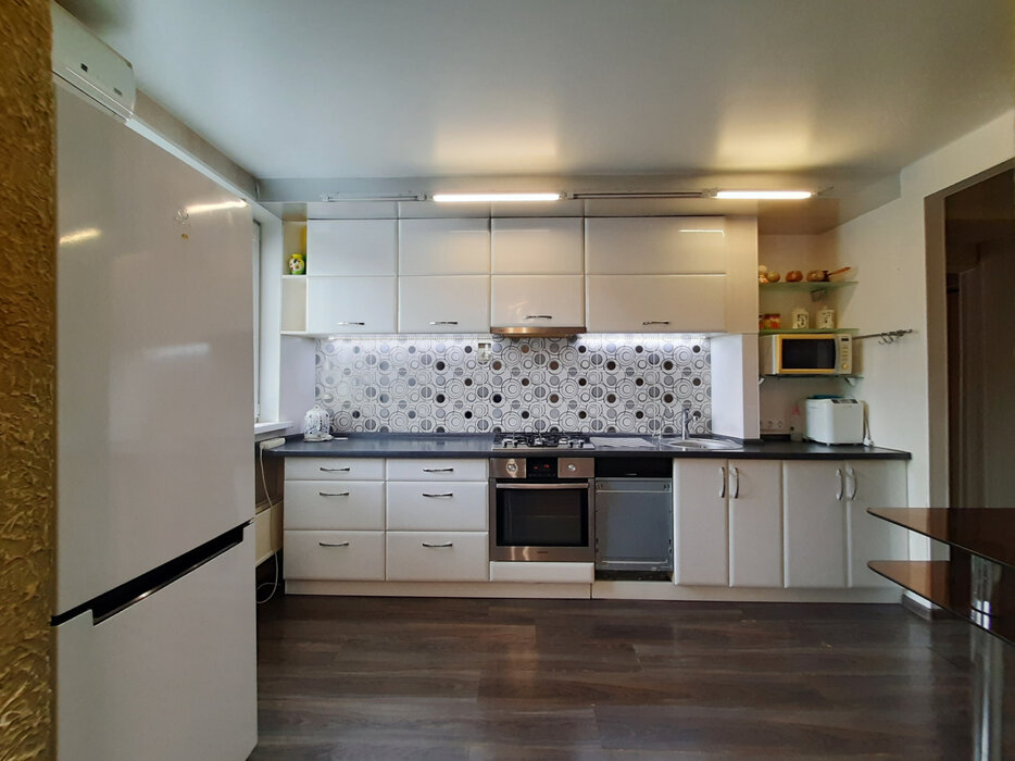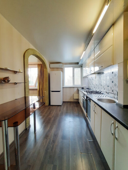 Остаётся кухонный гарнитур, встроенная бытовая техника, шкаф-купе, кондиционер.