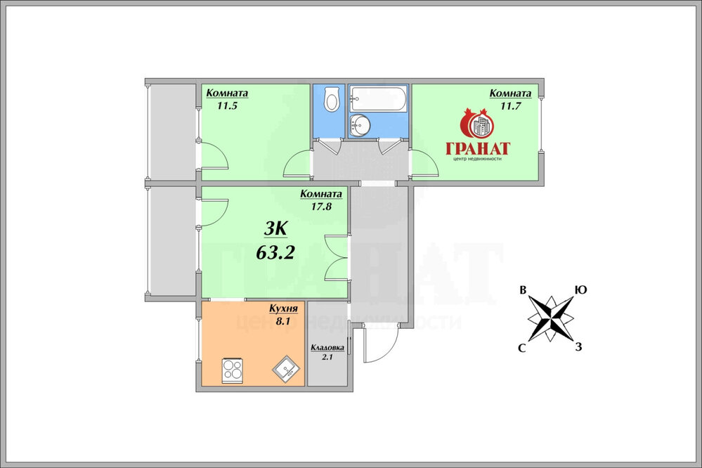 Объект № 194973. Предлагаю Вашему вниманию 3- комн. квартиру 67.5 на первом этаже девятиэтажного кирпичного дома. Квартира требует ремонта. Дом расположен напротив ТЦ Апельсин (через дорогу). Из плюсов: все комнаты изолированы, санузел раздельный, лоджия + балкон по разным сторонам дома. Большая кухня. На площадке всего две квартиры. Приглашаем на просмотр. ***Гарантийный сертификат «Защита собственности» по данному объекту в подарок***