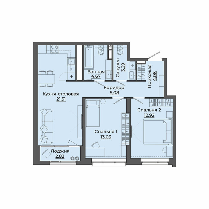Екатеринбург, ул. Блюхера, 26, ЖК Б.26 (Блюхера, 26) - фото квартиры 22 января 2026 90 дн. 1 39.13 2/26 7 000 000