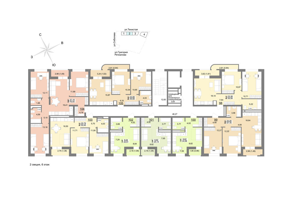 Семейный квартал «На Тенистой» – будет состоять из 7 домов переменной этажности и паркинга. 1-я и 2-я очереди уже построены, сейчас активно возводится 3-я очередь и готовится к старту 4-ая очередь квартала.