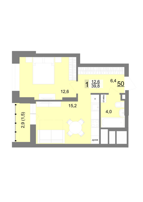 Общая площадь:39.8 м2