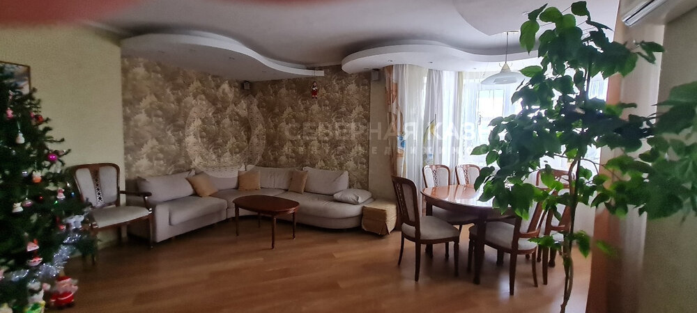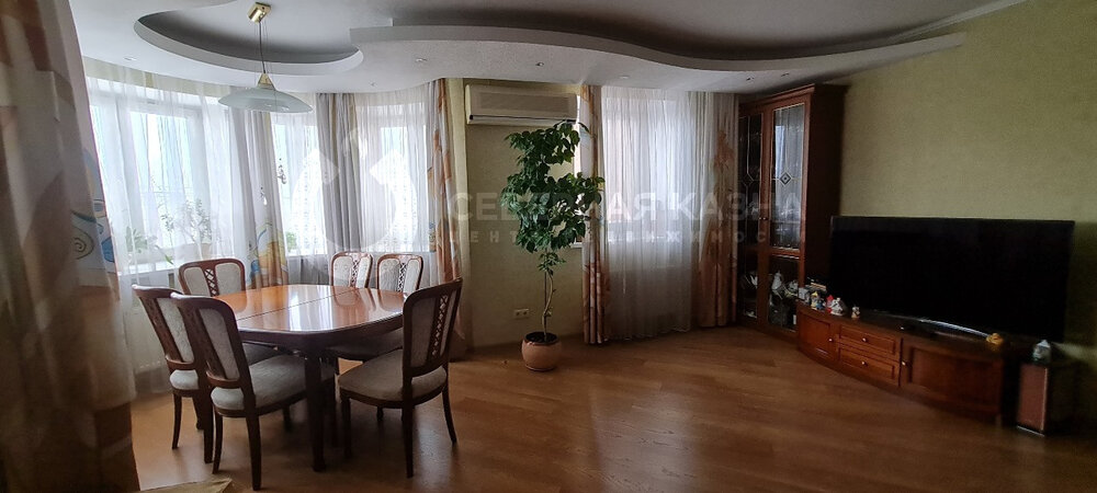 Продается для большой и дружной семьи пяти-шести комнатная квартира в 10 эт. кирпичном доме, 2000 г. постройки, в хорошем состоянии, на 4 этаже (объединена на стадии строительства из 2х комн. и 3х комн. квартир). Есть возможность разделения обратно на 2 квартиры, без нарушения несущих конструкций и инженерных сетей. Планировка объединяет две квартиры кухней и холлом, в остальной части, квартира комфортно разделена на 2 зоны со своими санузлами.) Дом с охраняемой территорией и консьержем в подъезде, с большим грузовым лифтом. На этаже 2 квартиры, и изолированная от подъезда рекреация площадью 20м2. Потолки натяжные и гипсокартон, пол ламинат и ковровое покрытие.