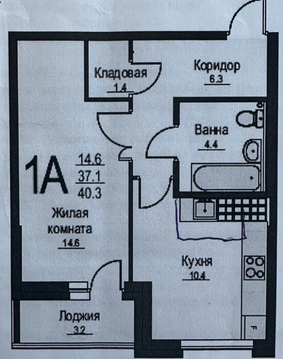 Общая площадь:36.4 м2