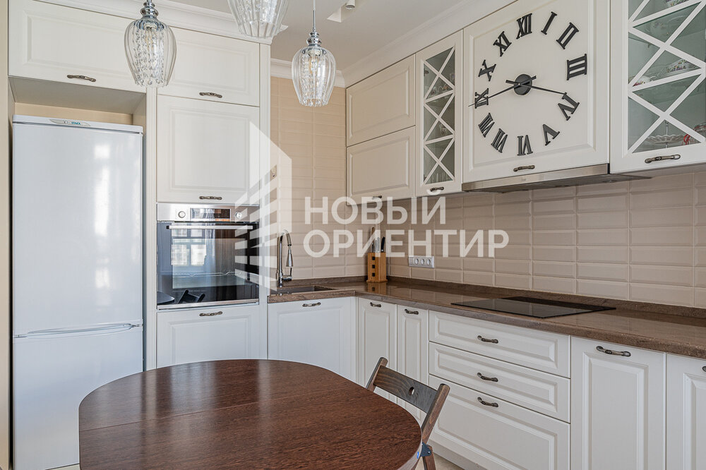 Новым собственникам в подарок остается:Качественный кухонный гарнитур в прекрасном состоянии со некоторой встроенной техникой. Вся встроенная мебель. Остальная мебель по согласованию.
