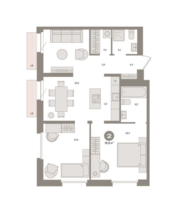 Общая площадь:78 м2