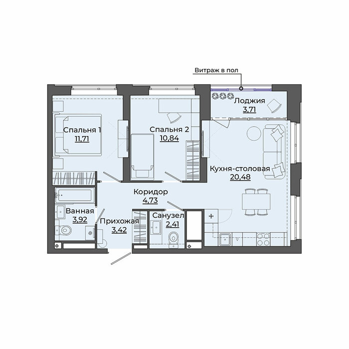 Общая площадь:61.22 м2