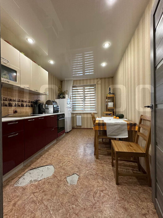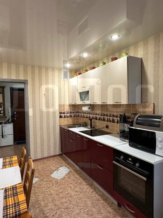 Натяжные потолки в ванне, кухне и большой комнате. Сантехника отличная, шкаф-купе и кухонный гарнитур оставим в подарок! Дом хороший, теплый, коммунальные платежи не дорогие. Во дворе расположен новый детский садик, Сбербанк в соседнем доме.