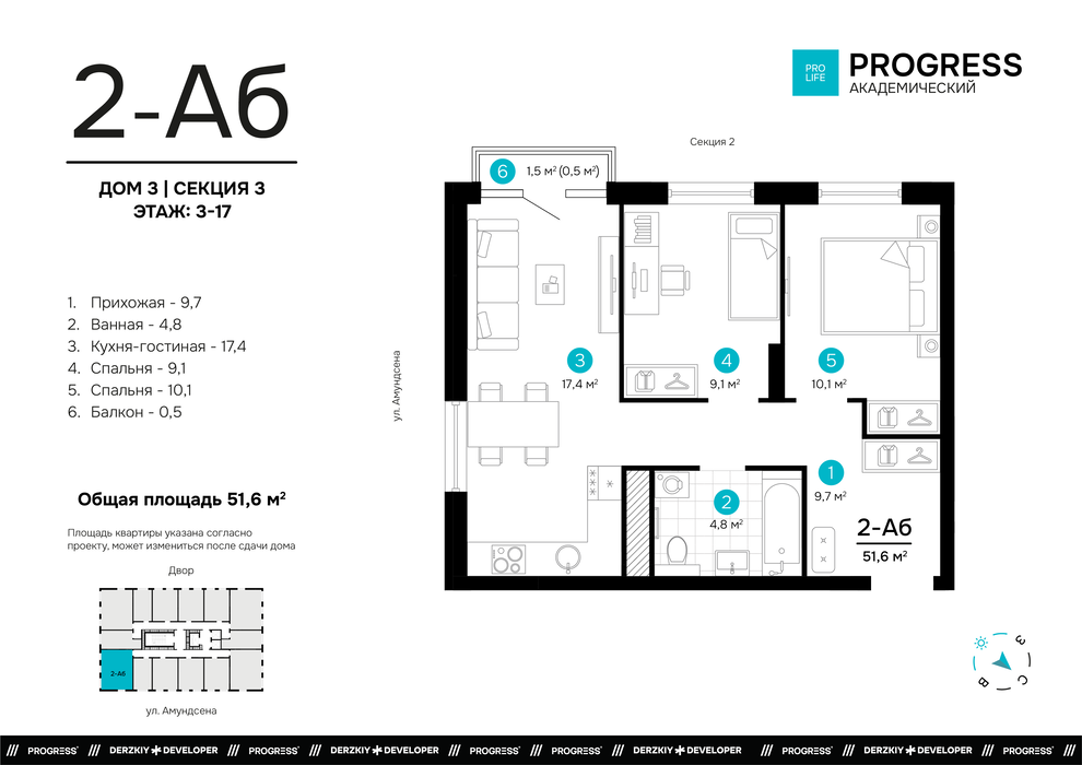 Продажа квартиры: Екатеринбург, ул. г. Екатеринбург, в районе улиц Василия Шамарина-Академика Ландау-Амундсена (почтовый адрес уточняется по окончании строительства), ЖК "PROGRESS (Прогресс) Академический" (Дом 3)