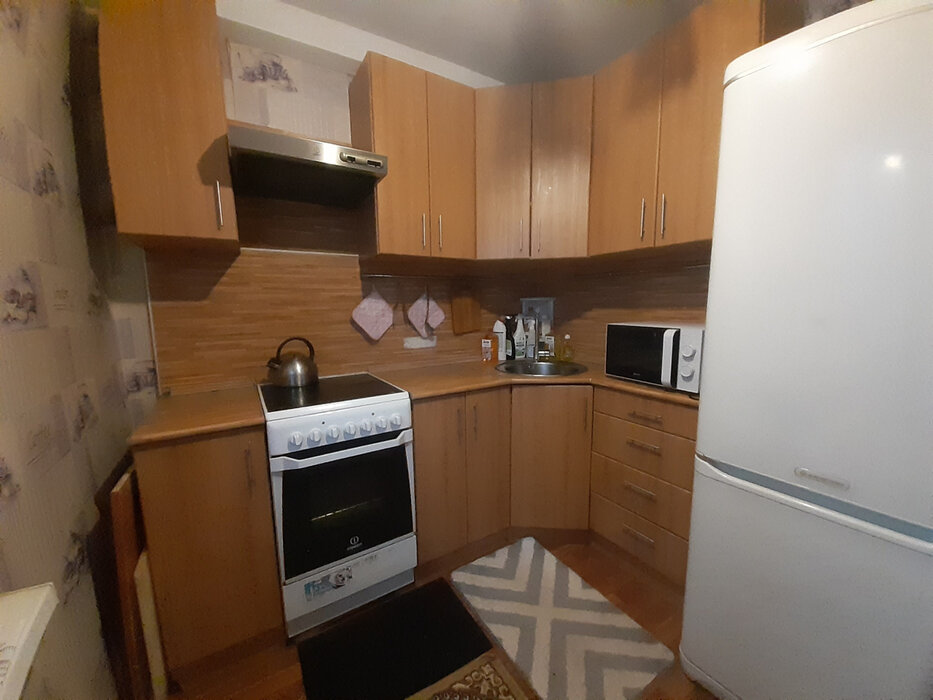 Квартира светлая, теплая, хороший ремонт, не требующий дополнительных вложений. По всей квартире заменены радиаторы отопления, межкомнатные двери и кухонный гарнитур выполнены в едином классическом стиле из натурального материала – шпон, натяжные потолки, на полу ламинат, входная сейф дверь.