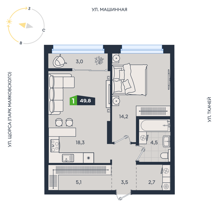 Общая площадь:49.8 м2