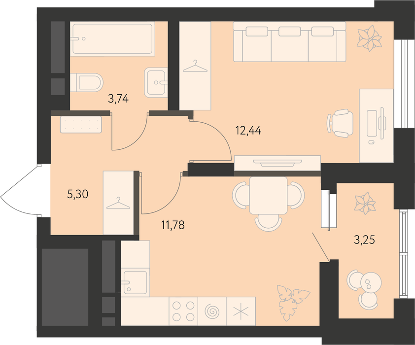 • 1-к квартира, Вильгельма Де Генина, 3.6.1, ЖК "Первый Академ"