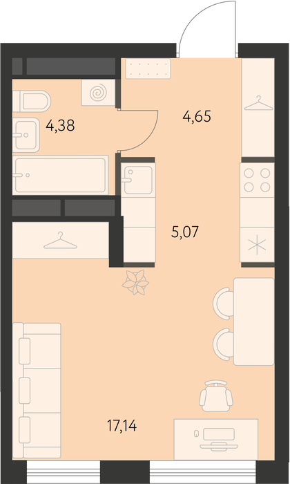 • 1-к квартира, Вильгельма Де Генина, 3.6.1, ЖК "Первый Академ"
