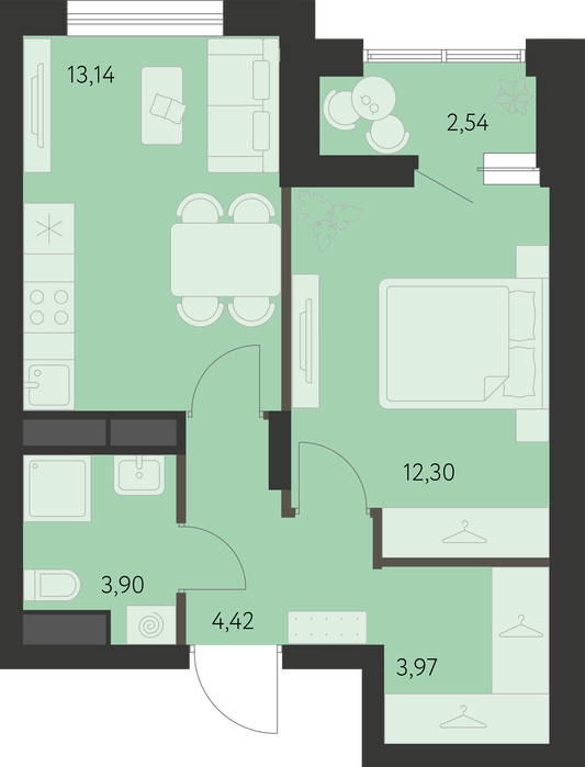 • 1-к квартира, Вильгельма Де Генина, 3.6.1, ЖК "Первый Академ"