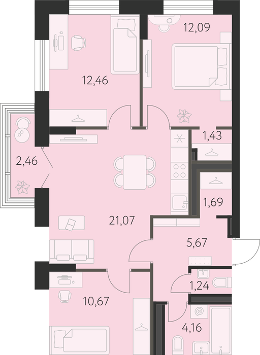 Количество комнат:3