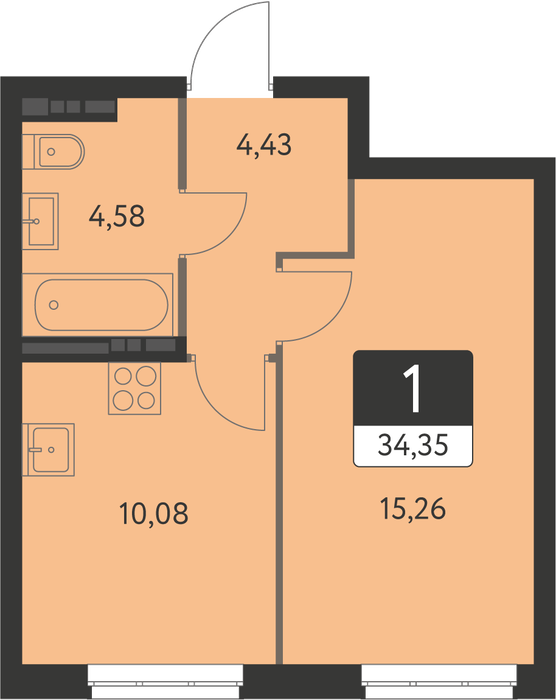 Общая площадь:34.35 м2