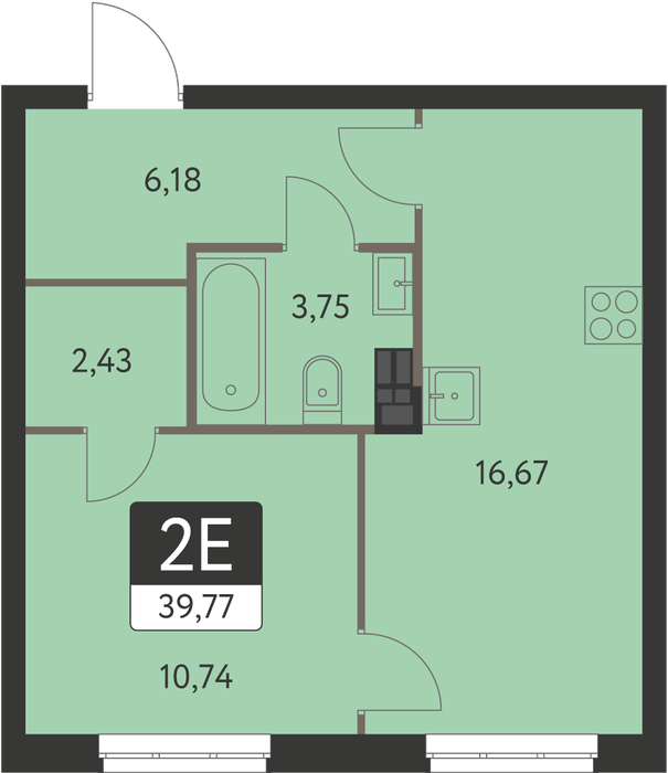 Общая площадь:39.77 м2