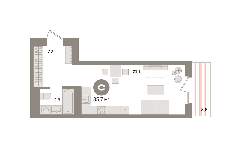 Студия в Южных кварталах. Особенности планировки: предчистовая отделка, балкон.