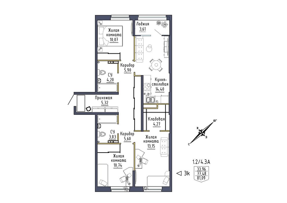 Общая площадь:81.09 м2