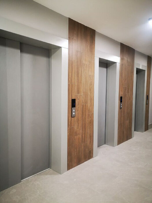 На входной группе в подъезде высокие потолки и широкие проемы создают величие парадной.