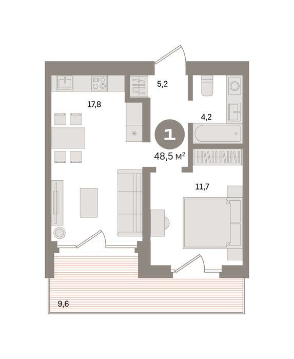 В однокомнатной квартире в «Южных кварталах» спроектированы просторная кухня-гостиная, спальня и ванная комната, предусмотрены ниши для хранения одежды и обуви. Купить однокомнатную квартиру в районе Южного автовокзала в Екатеринбурге выгодно напрямую от застройщика Брусника.