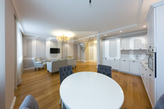 Продается замечательная квартира в самом сердце города! Вам не придется ничего докупать или делать ремонт — просто заезжайте и живите. Главные плюсы: ✅ Идеальное расположение: центр, парк и лучшие школы в шаговой доступности. Кирпичный дом, всего 27 квартир ✅ Ремонт «под ключ»: все продумано до мелочей: теплые полы, паркет, кондиционеры Fujitsu, система освещения. Великолепная шумоизоляция в квартире. Высокие потолки. ✅ Вся техника остается: премиальные марки AEG, Liebherr, Gorenje; кухонный гарнитур, оборудованный доводчиками Blum, стол обеденный. Остается мебель: кровать, тумбы — в спальне, гардеробная система; диван и тумба под ТВ — в гостиной; стиральная машина и водонагреватель - в санузле. ✅ Тихий и безопасный двор: закрытая территория, с парковкой. Свой выход в парк. ✅ Чистые документы: один собственник, без обременений. Отличный вариант для комфортной жизни! Фото и планировку прилагаю. На все вопросы с радостью отвечу в сообщениях. Приглашаю на просмотр.