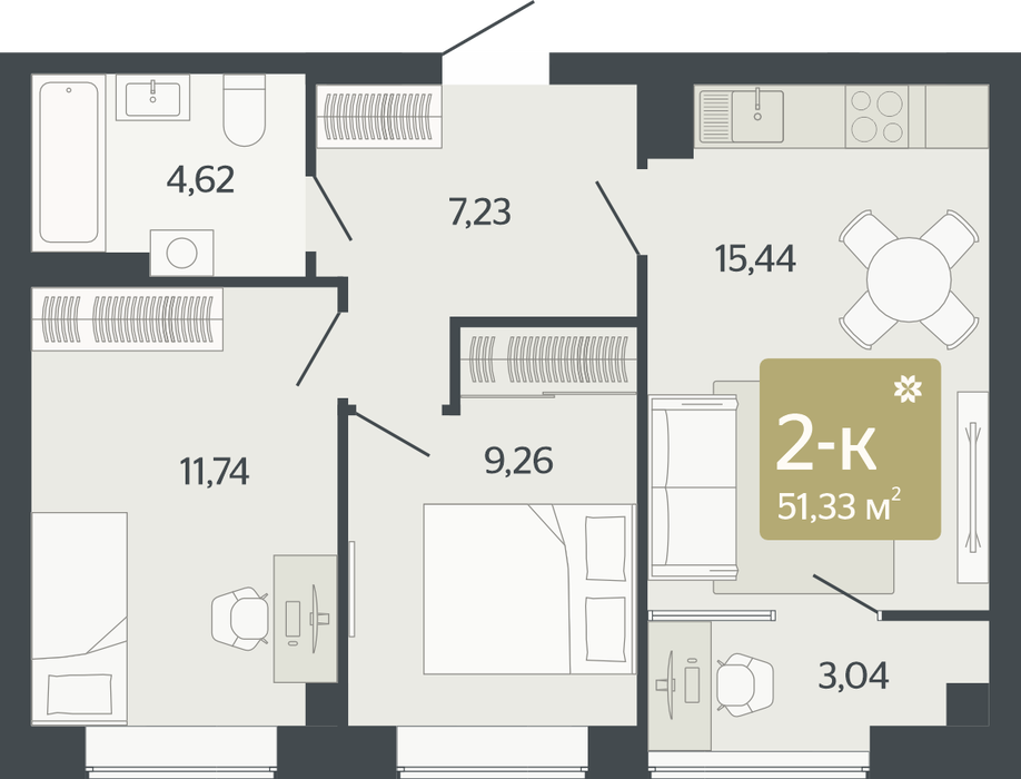 г. Березовский, ул. микрорайон Зори, 1 (городской округ Березовский) - фото квартиры 26 февраля 2025 90 дн. 2 52.76 1/8 7 149 167