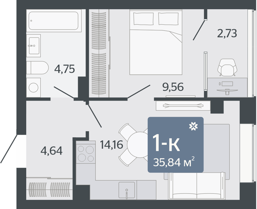 г. Березовский, ул. микрорайон Зори, 1 (городской округ Березовский) - фото квартиры 28 января 2025 90 дн. 1 35.86 7/8 4 620 975