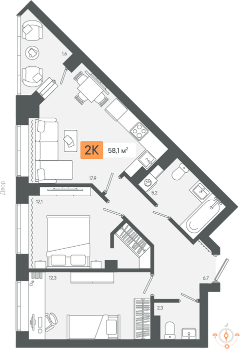 Количество комнат:2