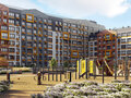Третья очередь состоит из 2 домов по 8 этажей с двором на стилобате. Внутри двора расположены детские площадки, зоны для спорта и отдыха, уникальная игровая квартира на свежем воздухе. Также предусмотрен закрытый теплый паркинг с кладовыми. Срок сдачи — IV квартал 2025 года.