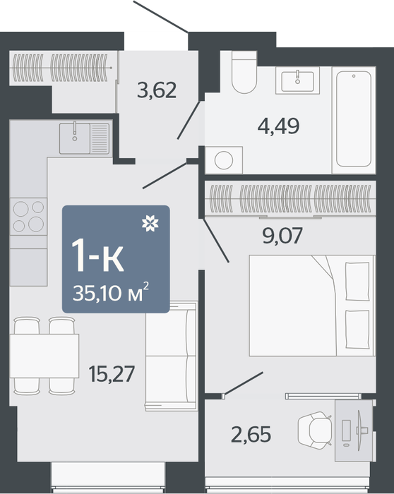 г. Березовский, ул. микрорайон Зори, 1 (городской округ Березовский) - фото квартиры 28 января 2025 90 дн. 1 35.86 7/8 4 620 975