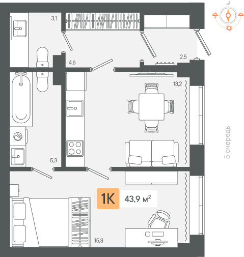 Для данного варианта квартиры возможно заказать евро ремонт от Застройщика.