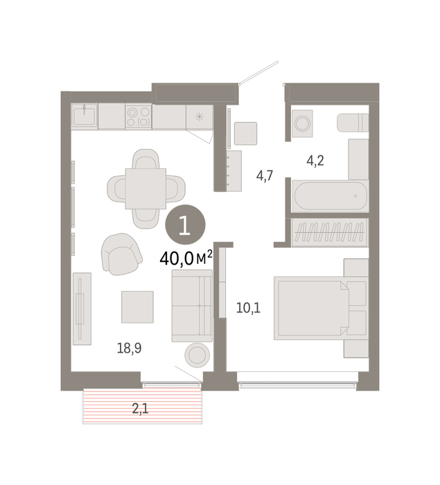 Общая площадь:39 м2
