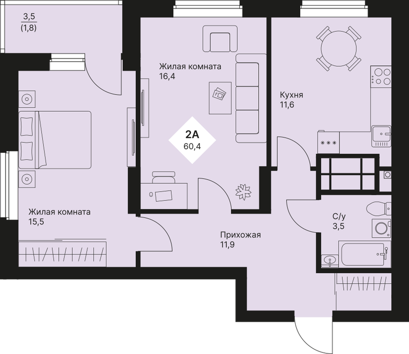 • 2-к квартира, Владимира Белоглазова, 2д, Жилой район «Изумрудный Бор» — 1 кв. 2026 г.