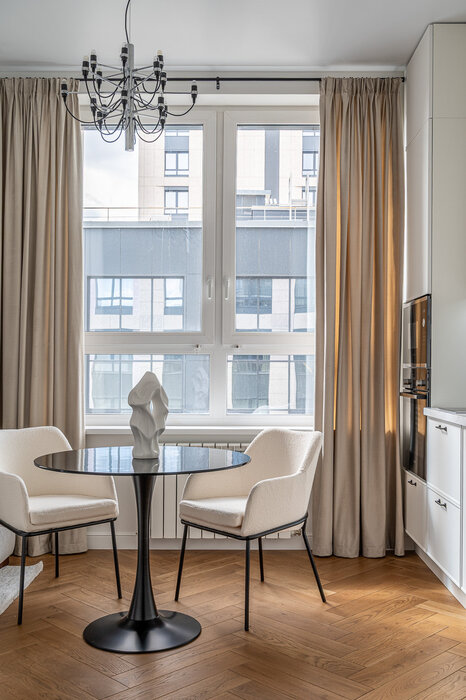 Окна: Большие окна, выходящие на две стороны – на тихую улицу Попова и во двор, обеспечивают много естественного света.