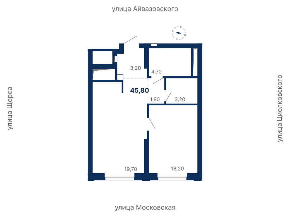 Общая площадь:45.8 м2