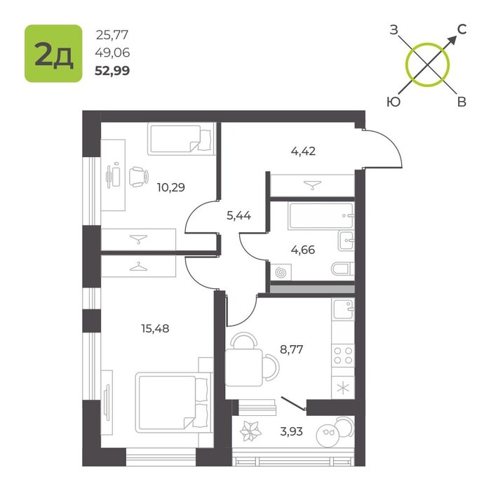 Общая площадь:52.99 м2