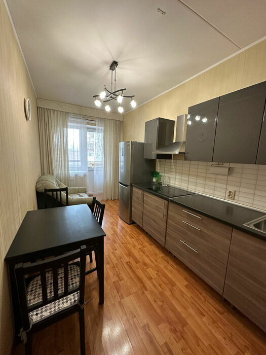 Классическая однокомнатная квартира с приятными дополнительными бонусами: большой совмещенный санузел (4,8 кв.м.). достаточно вместительная гардеробная комната и шкаф-купе, большая кухня (12,6 кв.м.) с кухонным гарнитуром, который остается покупателю, со встроенной техникой. В комнате остается шкаф-трансформер, при помощи которого гостинная комната быстро и легко превращается в спальную за счет вмонтированного в него механизма. Кровать раскладывается буквально в несколько секунд! В комнате установлен кондиционер.И все это может стать вашим!Расположение дома. Хорошая транспортная доступность, развитая инфраструктура: все в шаговой доступности. Недалеко станция метро. Закрытый двор с детской и спортивной площадкой. Есть подземный паркинг.Квартира без обременений и детских долей. Покажем в удобное для вас время. ID объекта в нашей базе: 10400