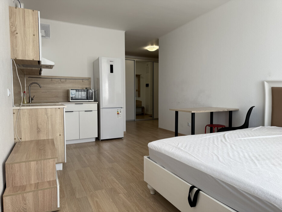 В одном из самых зеленых ( в нескольких шагах лесополоса с «Тропой здоровья», где круглый год можно гулять, собирать дары леса, кормить белочек и слушать пение птиц)районов города предлагаем к продаже квартиру-студию на улице Коаснолесья. Придомовая территория ЖК закрытая и охраняемая. Низкие коммунальные платежи ( зима-3500, лето-2000). Отличная Управляющая компания. В нескольких метрах современная Школа 182; несколько детских садов; ТЦ «Краснолесья»( в нем супер фитнес-центр «ДрайвФит»); множество торговых точек, отделение районной стоматологии ( одно из лучших).Все, что на фото-остается( заберем холодильник и микроволновую печь). В квартире сделан косметический ремонт, чистая, теплая, светлая. Спокойно и тихо -по соседям. Один взрослый собственник давно, долгов нет, зарегистрированных нет, к сделке готовы.